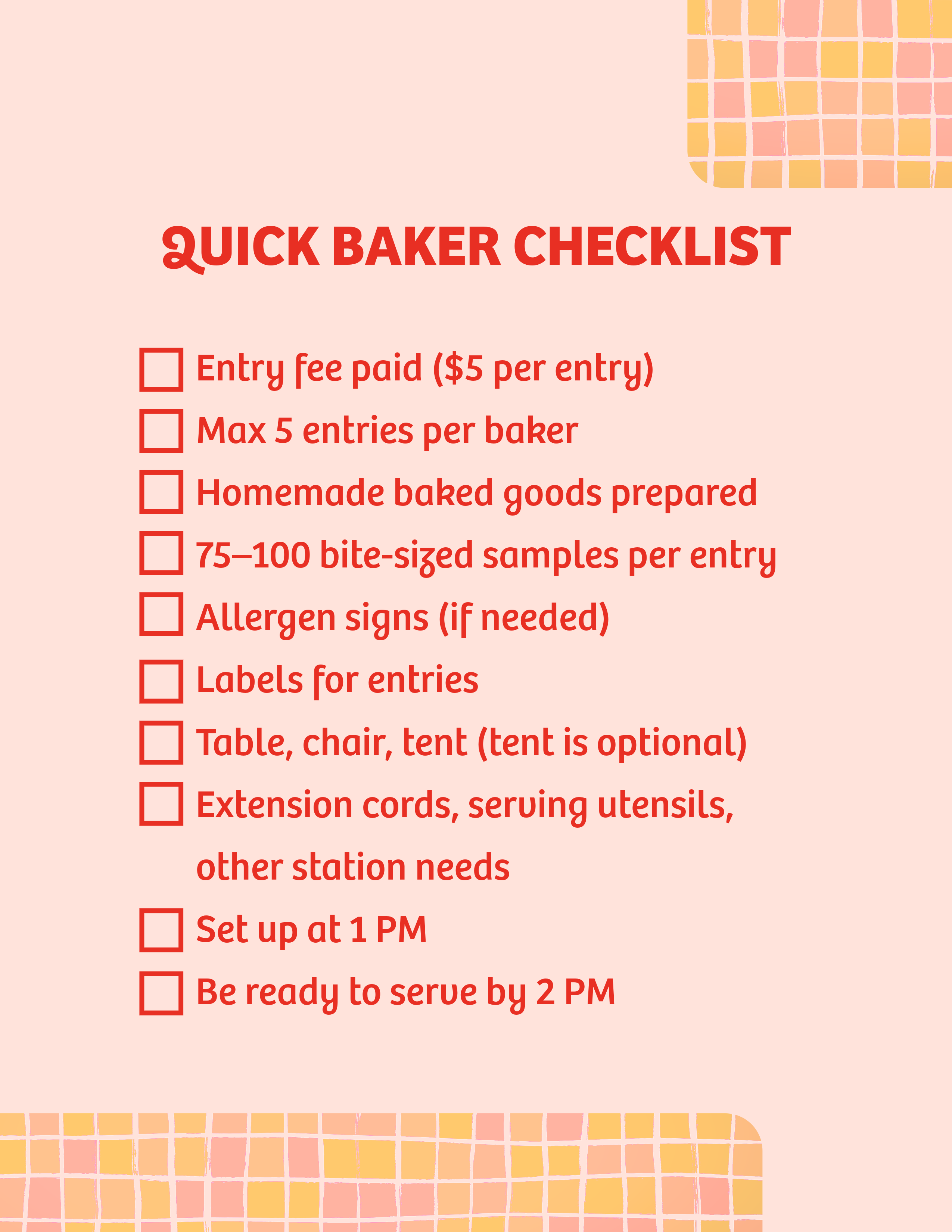 β’ We ask that entrants plan for about 75β100 small samples per entry. Bite-sized is greatβthis helps ensure everyone can taste and vote!